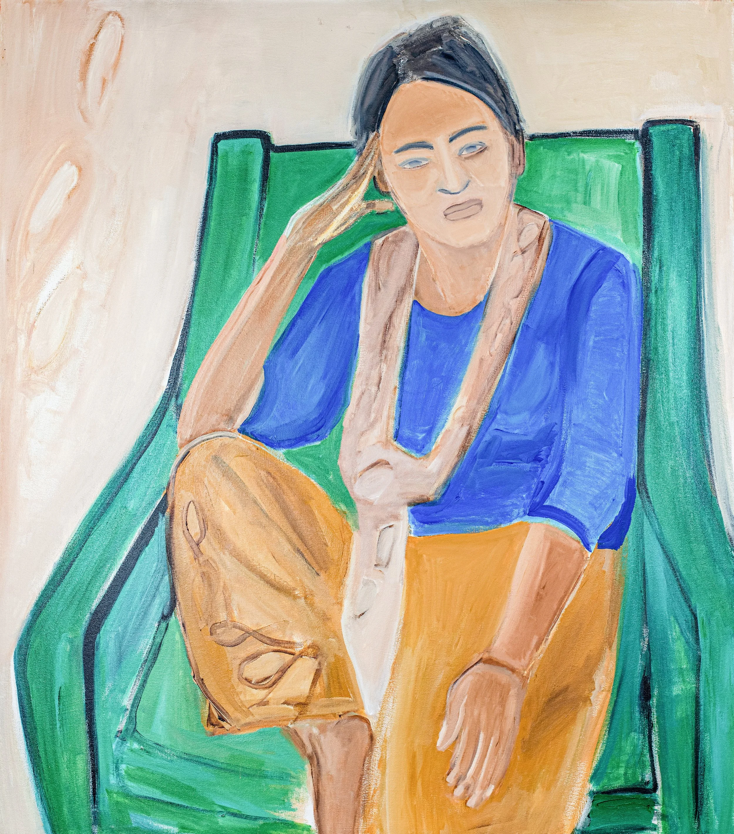 Woman in Green Sari, acrylic on canvas, 45 x 39 in.