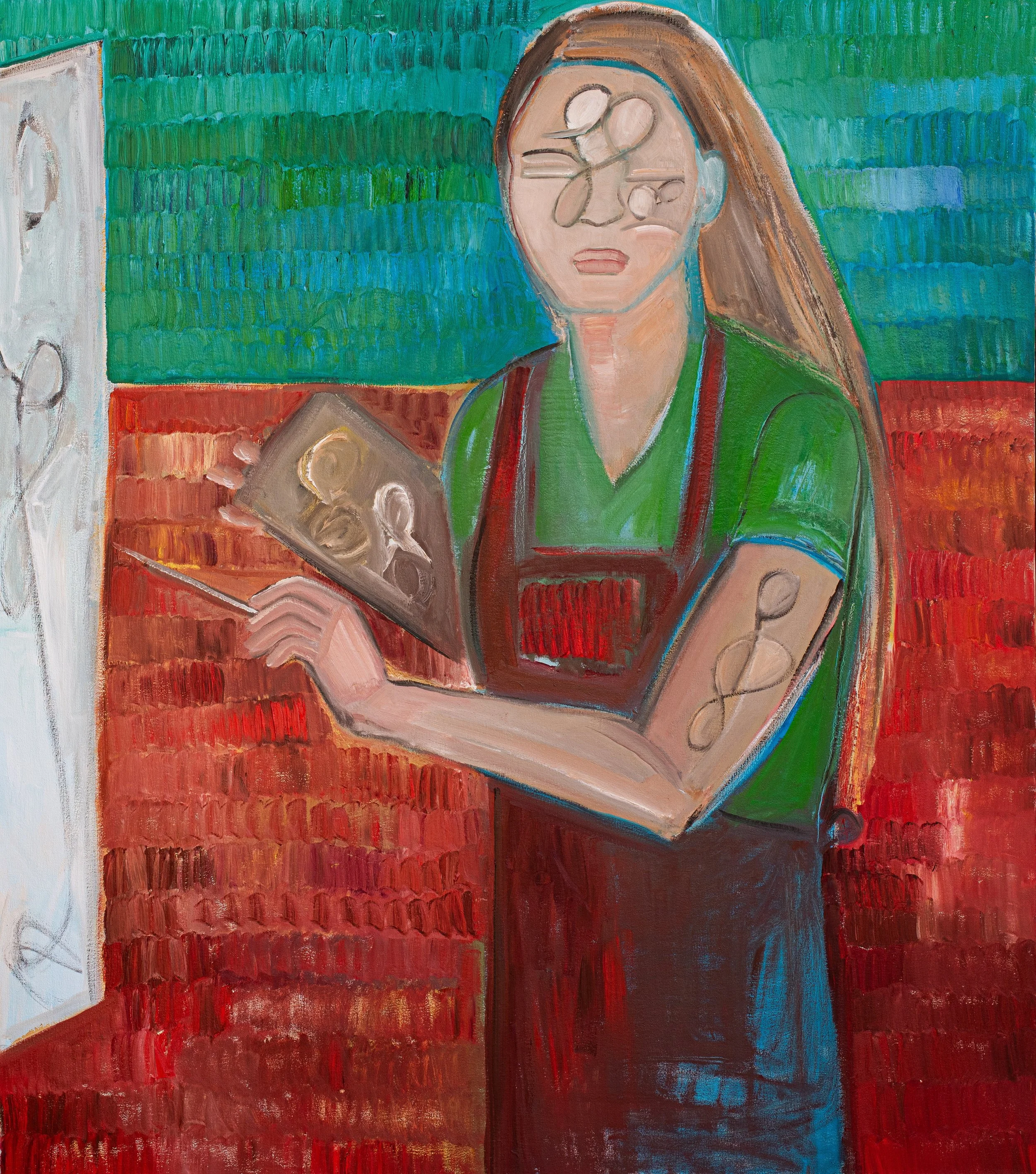 Simple Portrait, oil pastel and acrylic on wood, 24 x 19 in.
