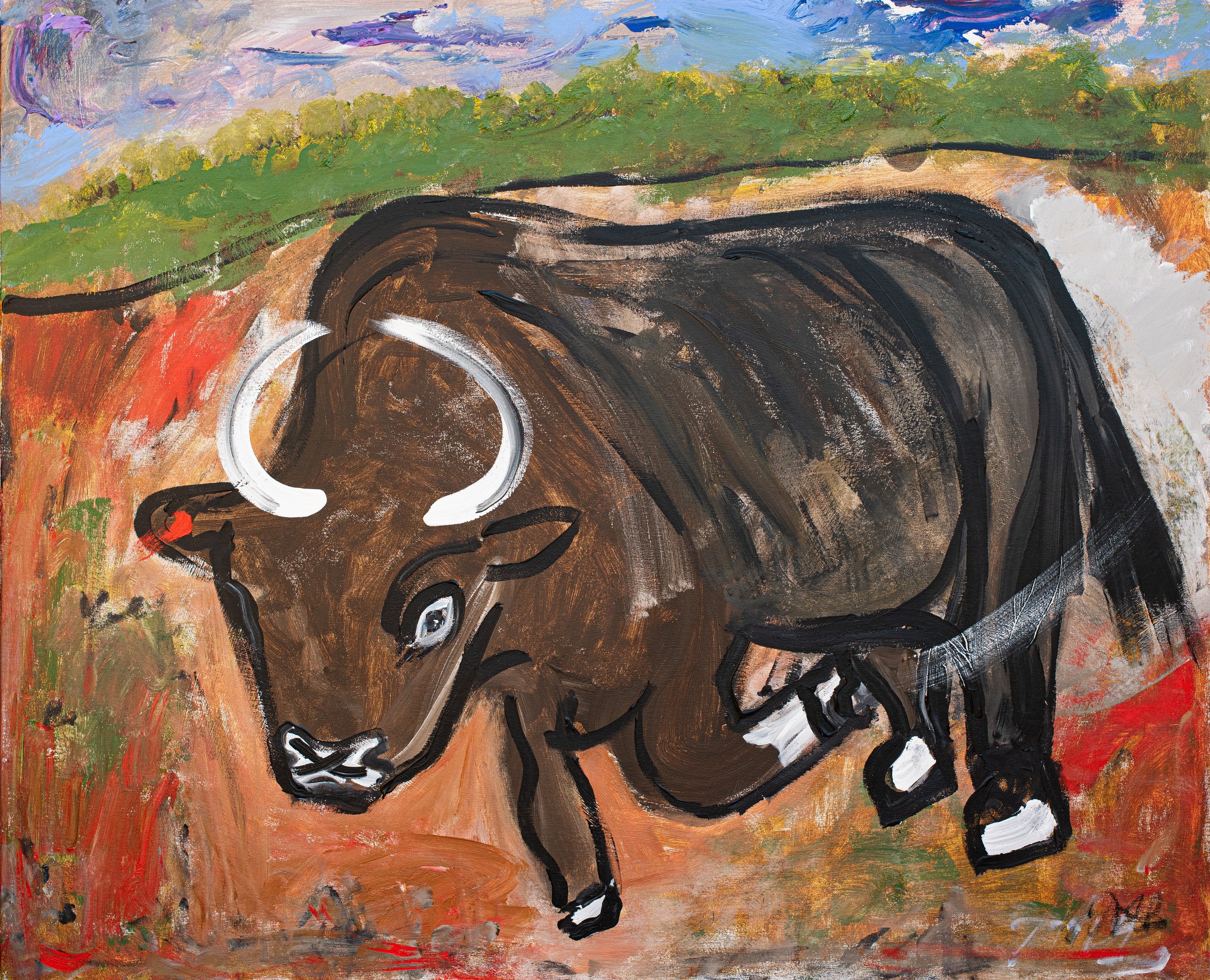 The Bull of Fierceness Kicks up the Dust of Selfishness, 42 x 48 in.