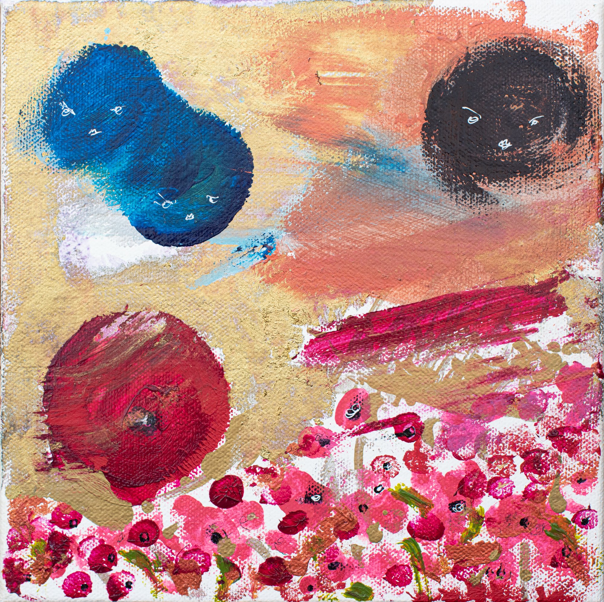 Poppies & Sigils, acrylic on canvas, 20 x 20 in.