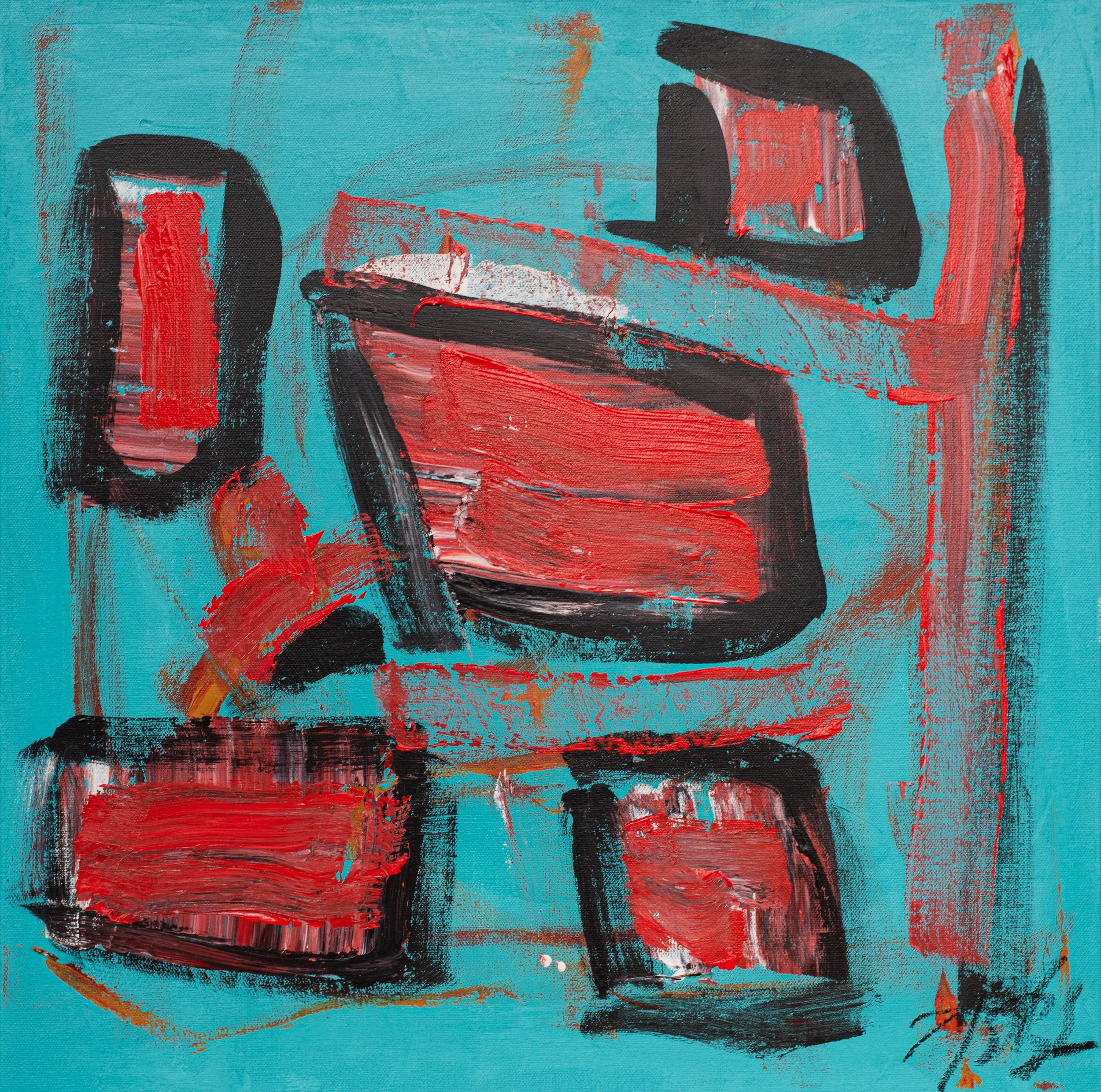 Red Black Abstract, 20 x 20 in.